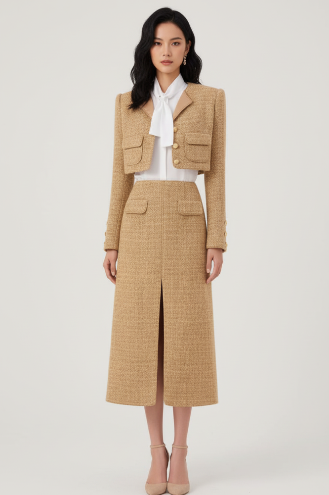 طقم جاكيت وتنورة توييد