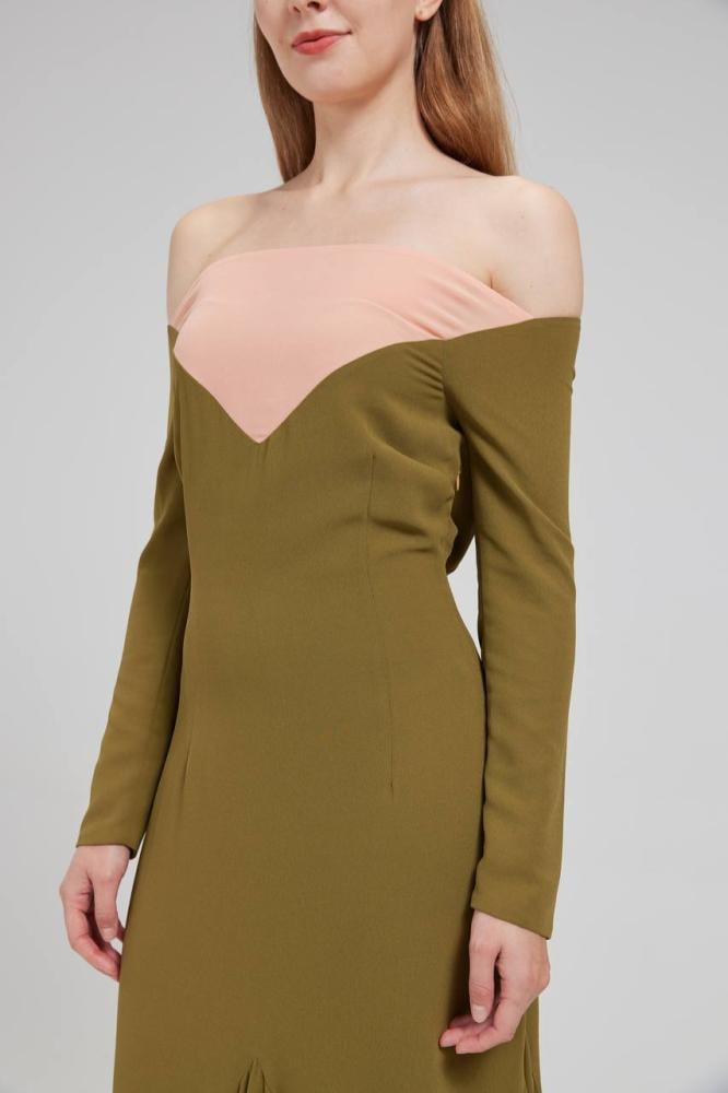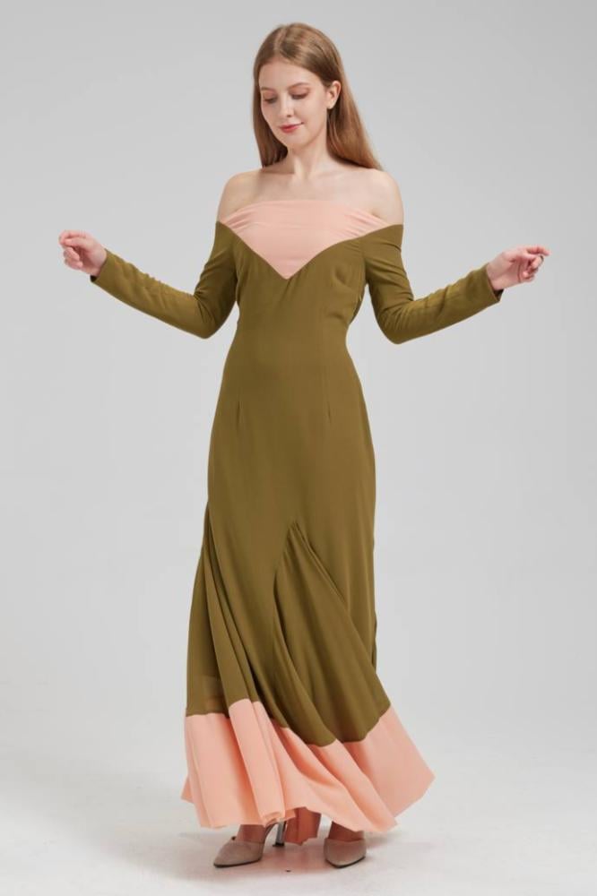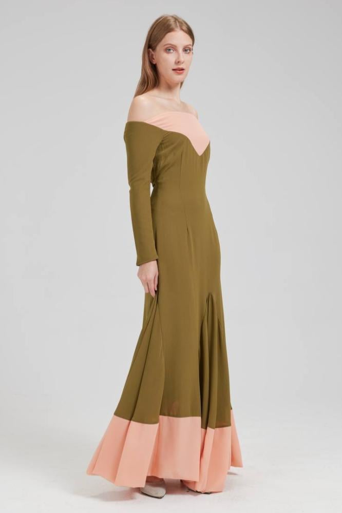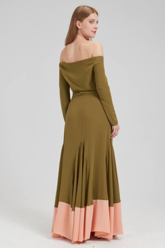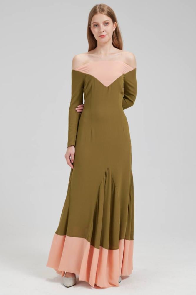 اختاري لمسة لونية جريئة وراقية مع فستان أخضر غامق طويل بدمج متناغم بين الأخضر الغامق والوردي الفاتح. تصميمه العصري والمريح يجعله خيارًا مثاليًا لعاشقات فساتين سهرات طويل وفساتين ناعمه طويل بألوان مزدوجة تمنح حضورًا لافتًا وسحرًا خاصًا.