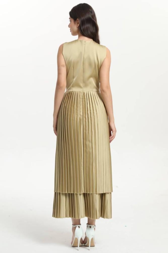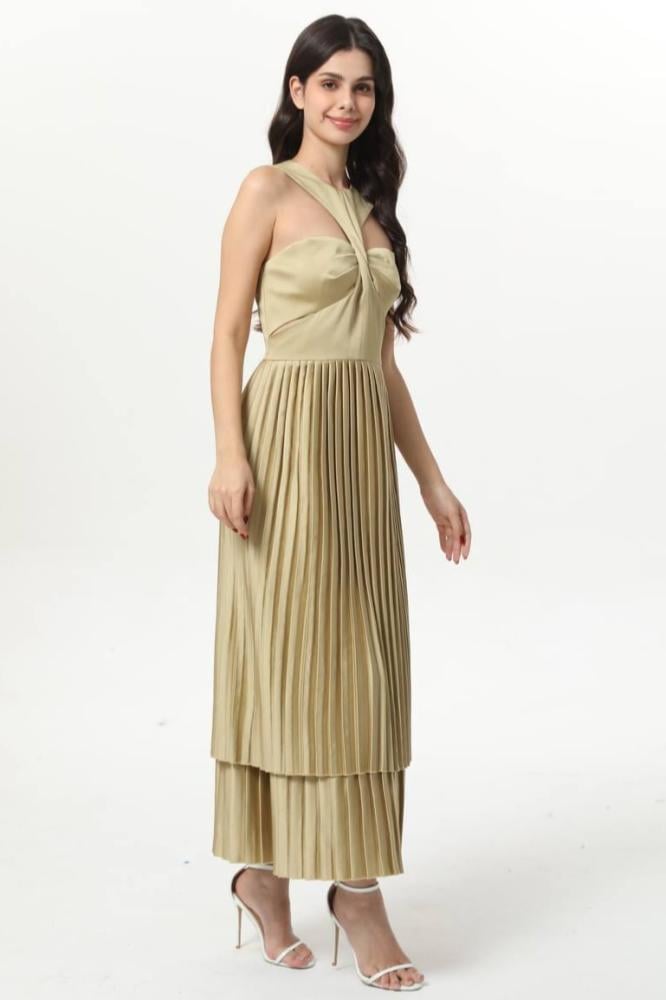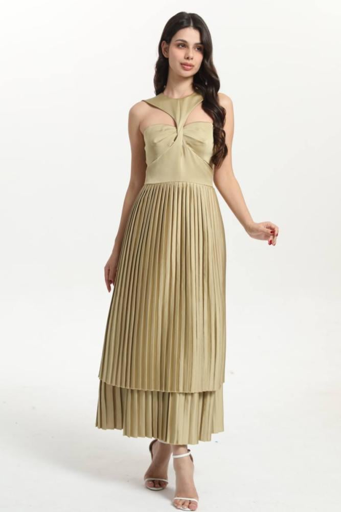 إذا كنتِ تبحثين عن فستان باللون الذهبي يجمع بين الرقي والتصميم العصري، فإن فستان ذهبي هو خيارك الأمثل. يتميز هذا الفستان بكسرات فخمة وتصميم علوي مميز يمنحك إطلالة فريدة لا تُنسى، ويضفي لمسة من التألق على كل مناسبة تحضرينها.