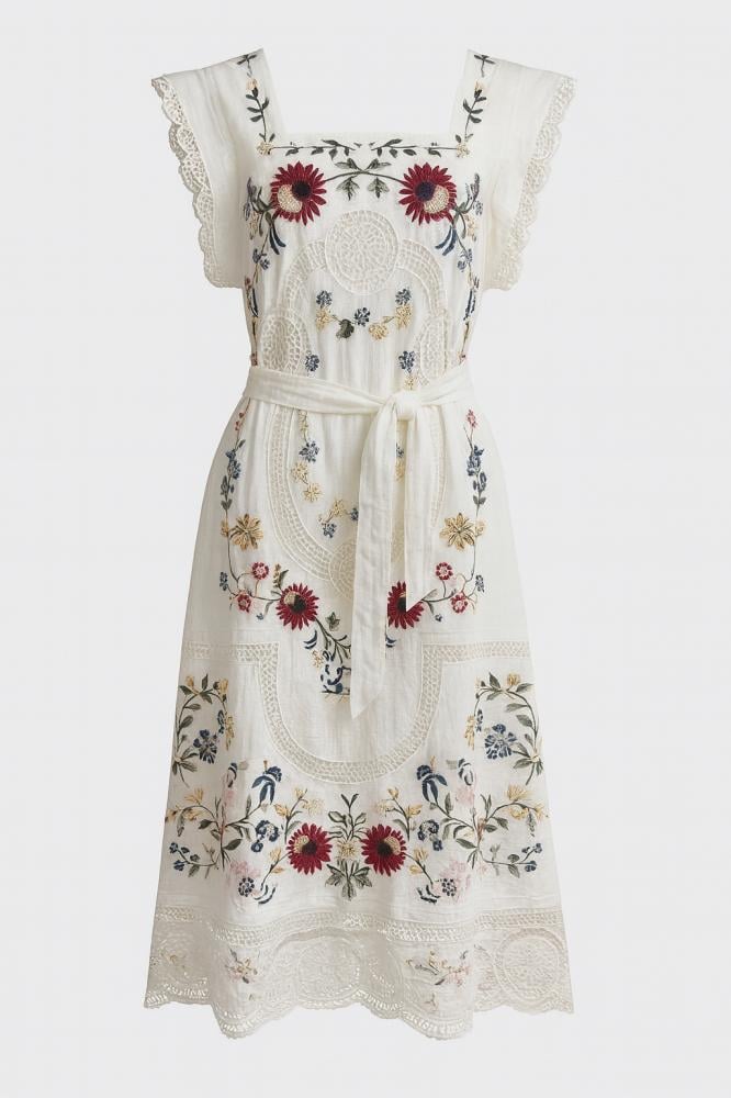 استمتعي بإطلالة ساحرة مع فستان أبيض بتطريز ملون بأكمام قصيرة، الذي يجمع بين الأناقة والراحة. يأتي هذا الفستان بتصميم ميدي قصير يبرز أنوثتك ويضفي لمسة من الحيوية على مظهرك.
