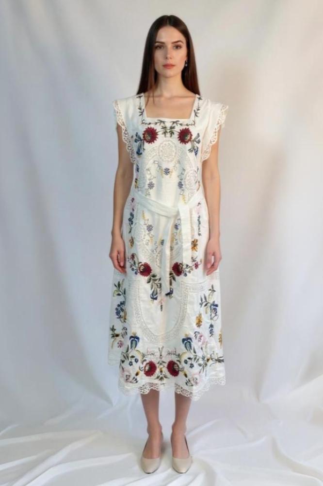 الفستان مصنوع من قماش ناعم ومريح، مما يجعله مثالياً للاستخدام اليومي أو المناسبات الخاصة. يتميز بتطريز ملون رائع يزينه بوردات جميلة، مما يضفي عليه لمسة فنية مميزة. الأكمام القصيرة تضيف لمسة من الأناقة وتمنحك حرية الحركة.