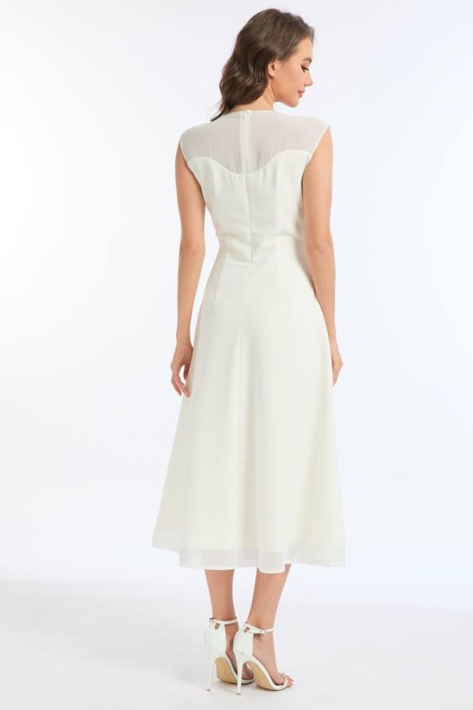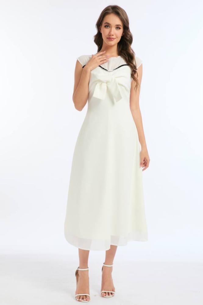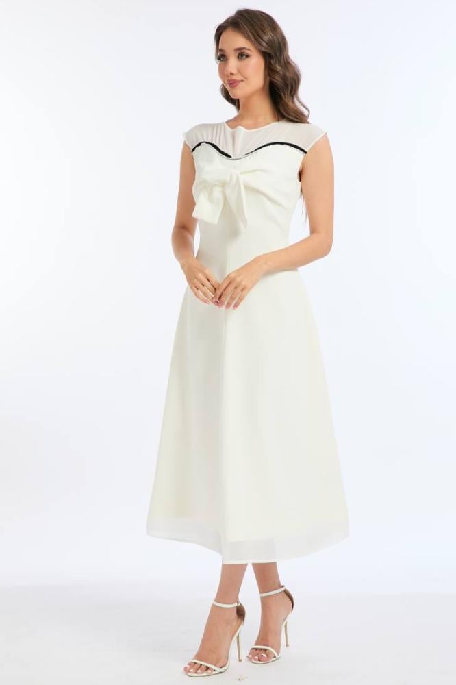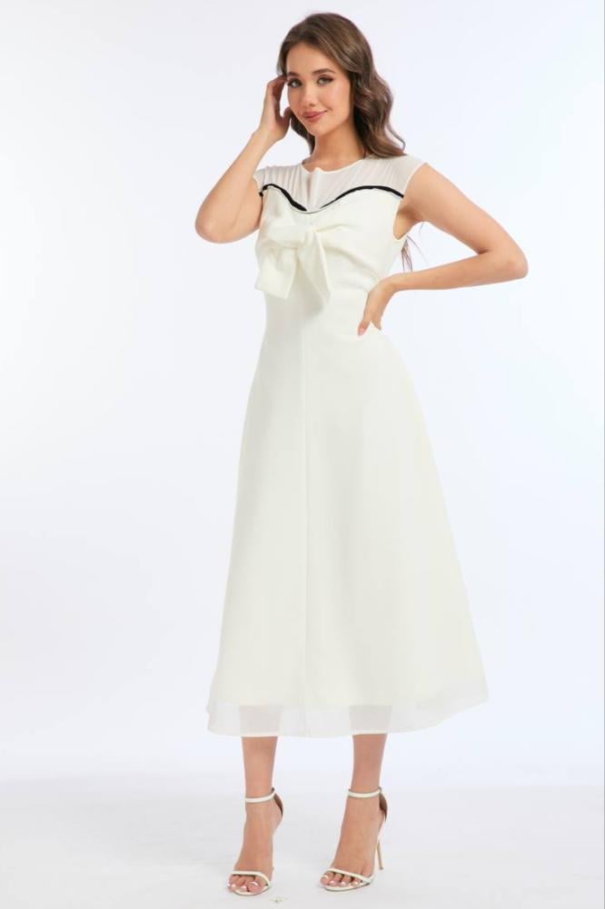 If you're looking for a long off-white dress that combines elegance and luxury, the Roana 1 dress is the perfect choice. Its long, midi design with an A-line neckline gives you a charming look suitable for various occasions, with its elegant color and delicate details that highlight your natural beauty.